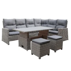Keter California 5 Seater Outdoor Garden Furniture Sofa And Lounge Set – Graphite With Grey Cushions