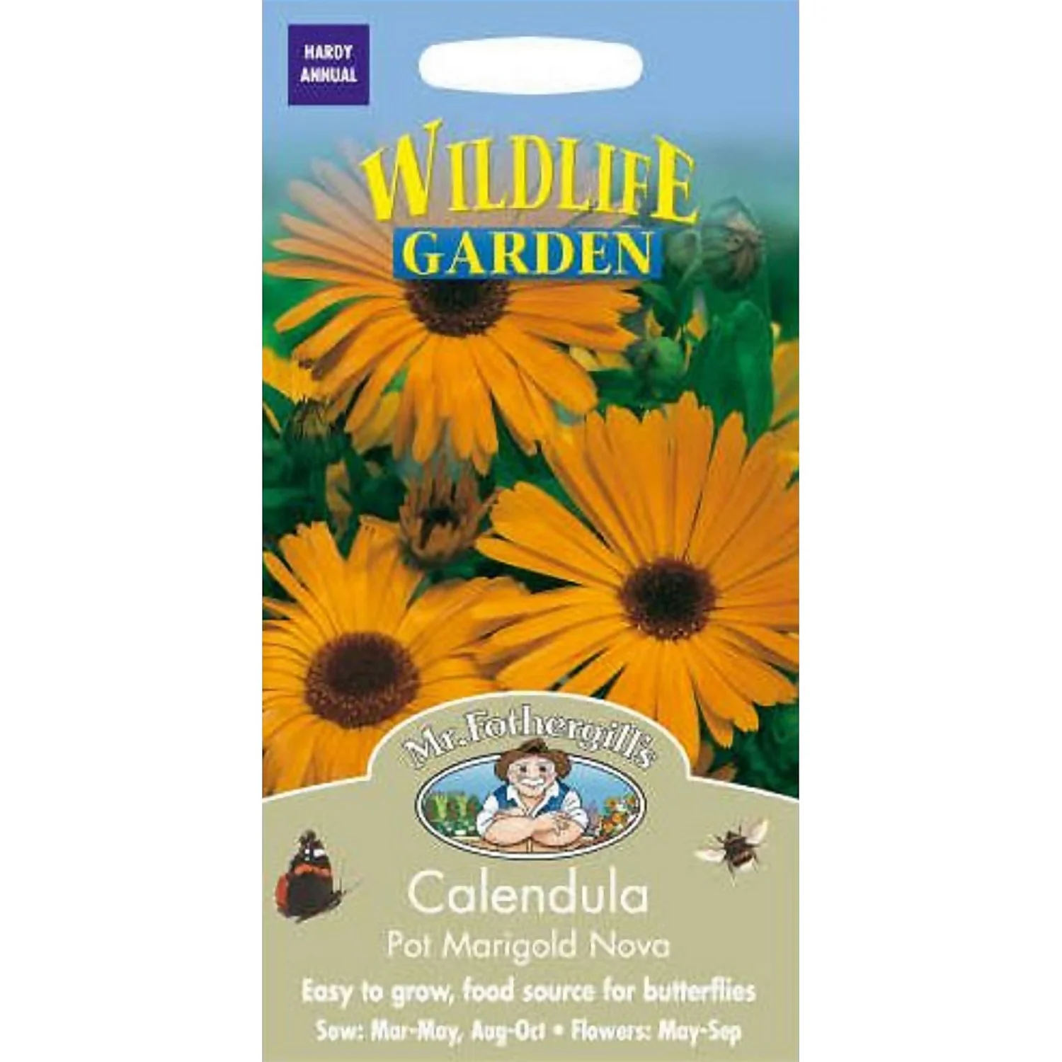 Calendula Pot Marigold Nova (Calendula Officinalis) is a brightly coloured easy to grow favourite and great food source for wildlife. Attractive to bees and insects. For drifts or as an easy filler in mixed summer borders and for cutting gardens.