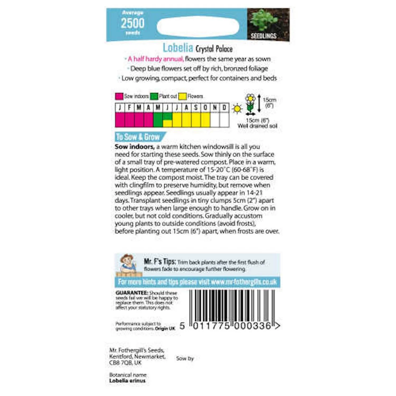 Lobelia Crystal Palace (Lobelia Erinus) has richly coloured flowers which are set off by beautiful bronzed foliage.RHS award of garden merit. An ideal choice for bedding schemes and all manner of containers.