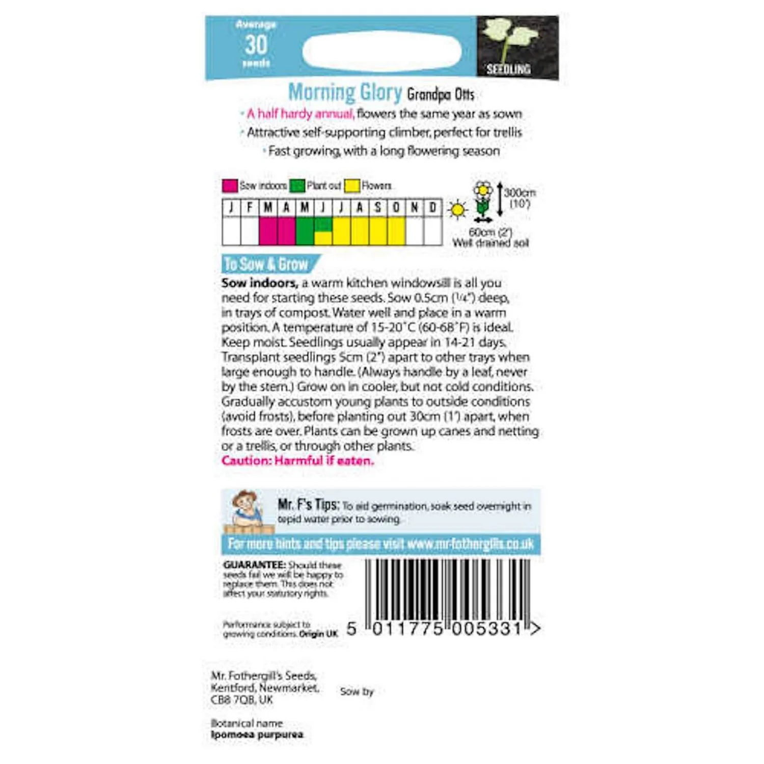 Morning Glory Grandpa Otts (Ipomoea purpurea) is a fast growing climber with a long flowering season. Superb grown over wigwams trellis and fences.