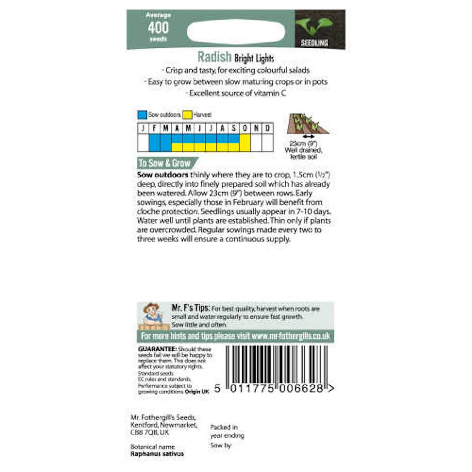 Radish Bright Lights (Raphanus sativus) is an easy to grow excitingly coloured mix of crisp and crunchy tasty roots.