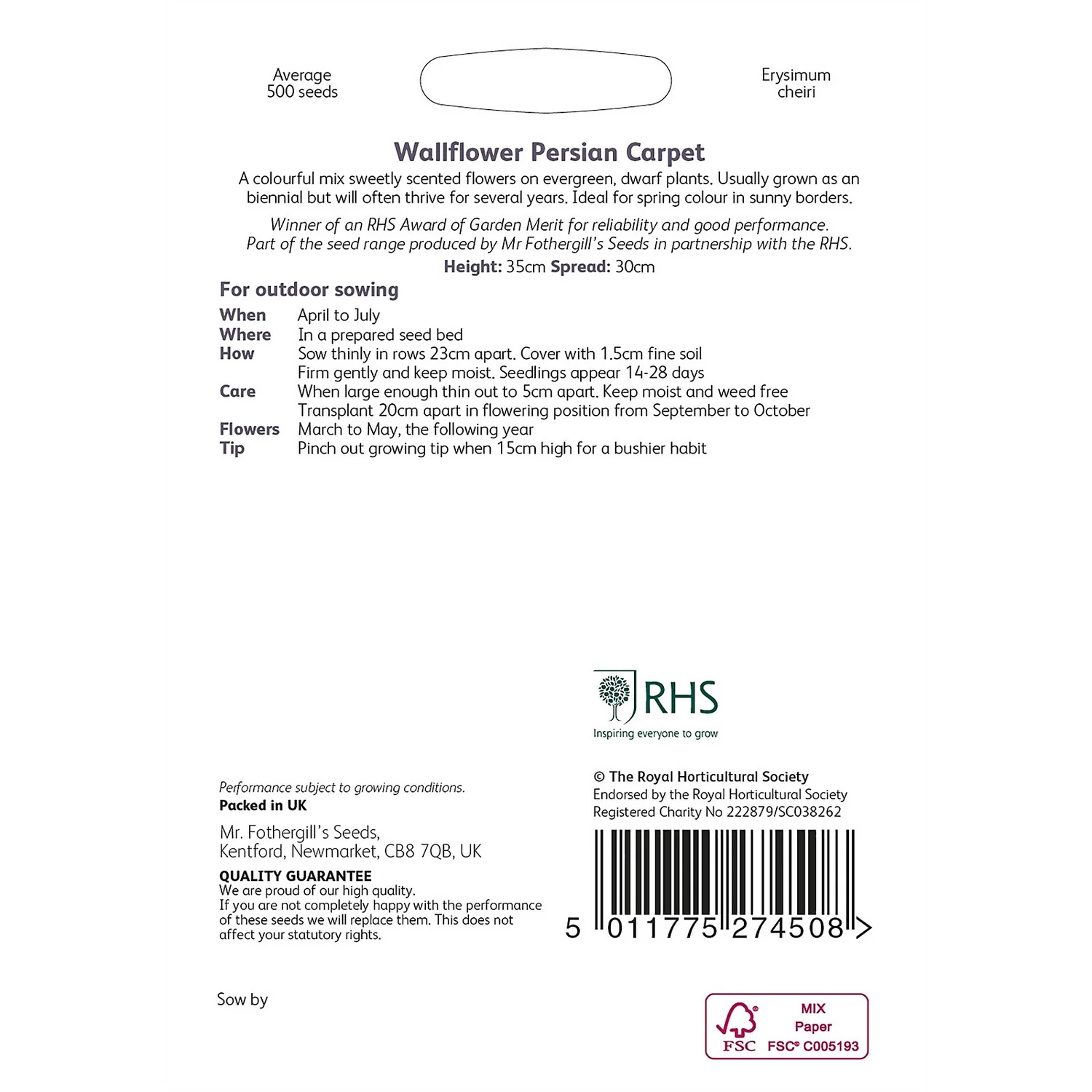 | Latin Name | Erysimum cheiri |
